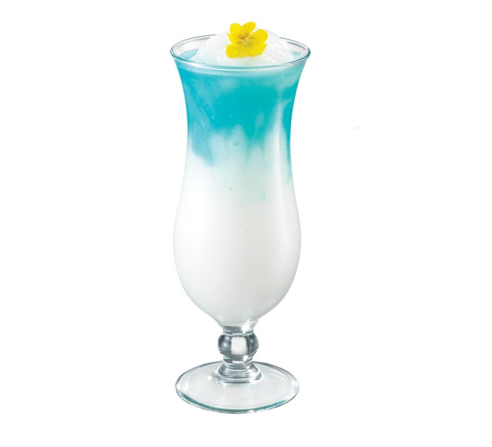 Wlej pierwsze trzy składniki do blendera. Blenderuj do uzyskania jednolitej i gładkiej konsystencji i przelej do szklanki. Na wierzch wlej Blue Curacao i delikatnie wymieszaj by uzyskać przejście kolorów.