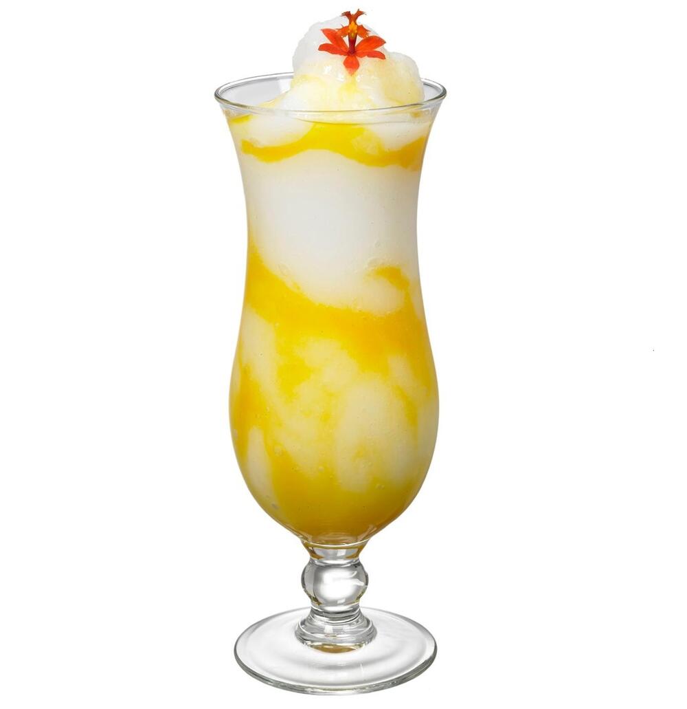 Wlej 15 ml FC Mango Puree na dno szklanki. Połącz w blenderze FC Pina Colada z shakerem lodu. Blenderuj do uzyskania gładkiej i jednolitej masy i przelej do szklanki na wlane już mango. Uzupełnij pozostałymi 15 ml FC Mango Puree. Mango z dna wymieszaj delikatnie łyżką barmańską nie łącząc go z górną warstwą.